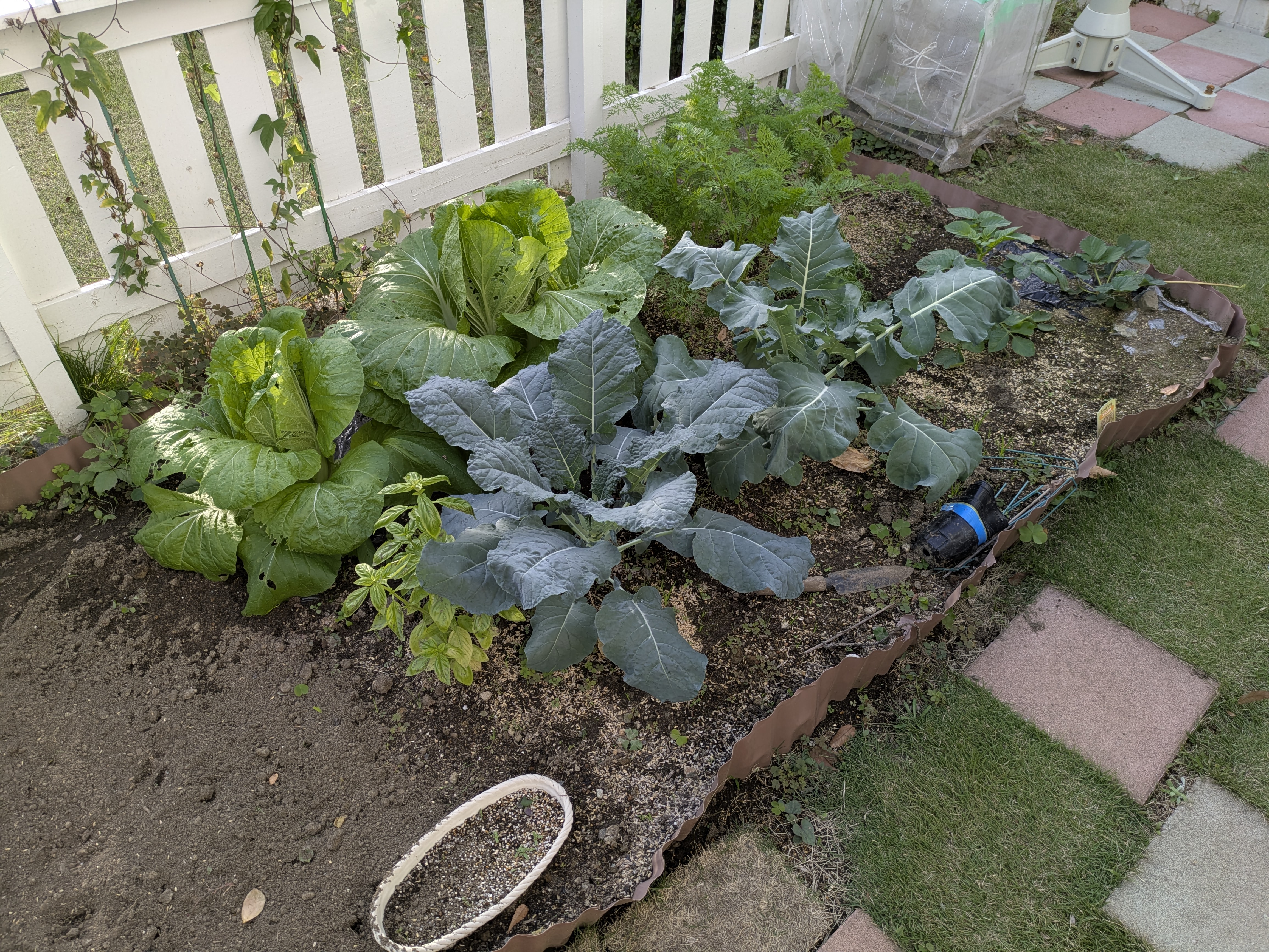 散歩で豊ヶ丘のアメリカフウ並木まで行った。菜園のようす。白菜が虫に食われているが,どうしたものか分からない。結球するっていうのもはじめてだし。ブロッコリーも実がなるのが遅いような気がする。全部,初体験なので指導者がほしいと思う。