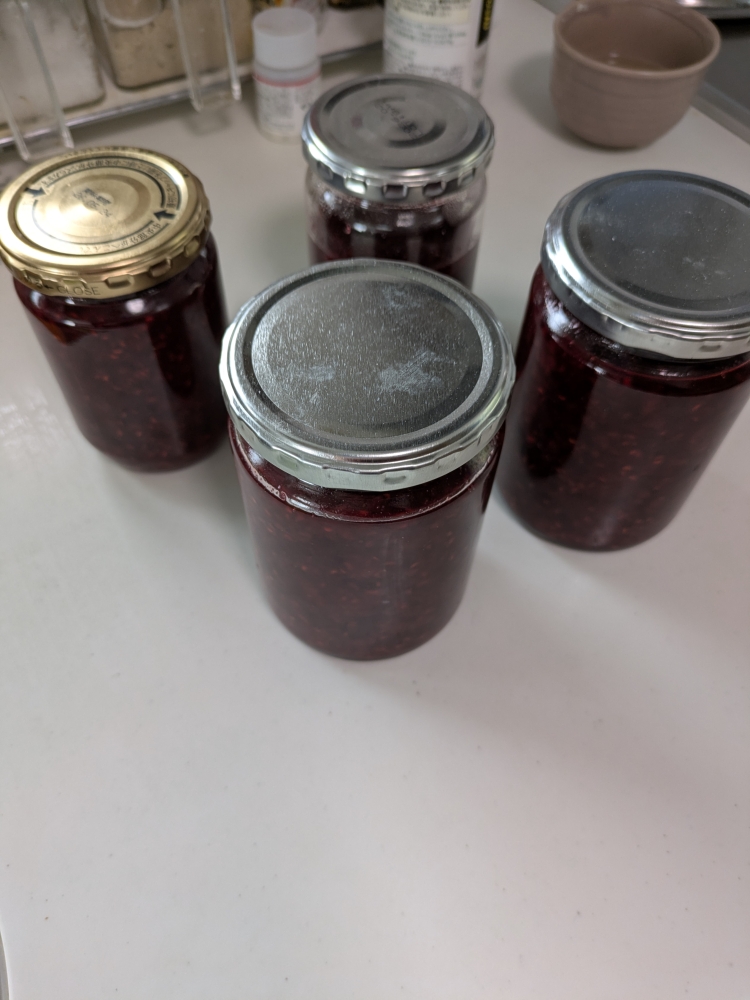ラズベリーなどどこで仕入れるのかというと,業務用スーパーの冷凍もので,いちごも冷凍のものが500g280円とか安く手に入る。ジャムなど買ってもいいが,自家製だと安上がりでもあり,まわりの評判もかなり良い。