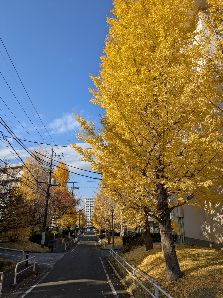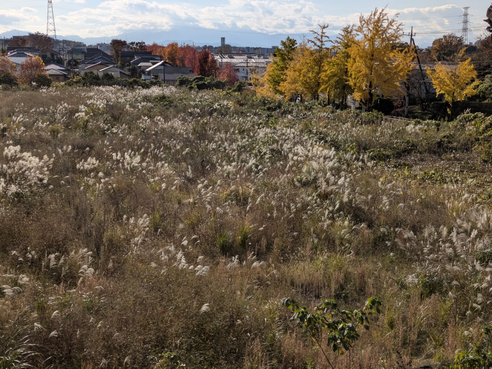 昨日はアシスト自転車で唐木田のDCMまで行って,タマネギの苗を買ってきたのだが,NHKのやさいの時間(録画)で植え付けのやり方を見ると,苗が細すぎて,どうしていいか分からない。とりあえず,買ってきたまま畑にケースごと埋めてようすを見ることにした。午前中は若葉台まで車で買い物,一応ネギ用の肥料などを買っておいた。午後にはまた自転車でふらふら。貝取の業務用スーパーだと5kg3000円台のお米が売っている。次は,ココで買おうかと思った。イチョウの黄葉やススキの原っぱなど写真を撮った。