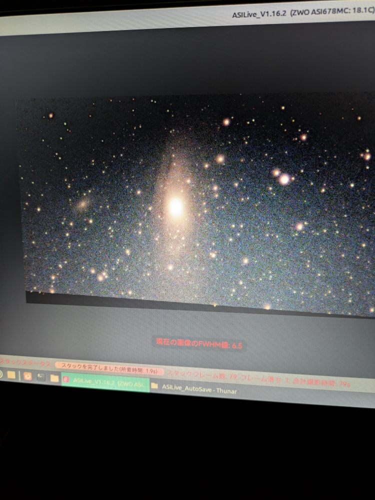 天体写真を撮る機材は,一応完成されたシステムとなっていて,これまでの過程で使わなくなった機材がいろいろある。赤道儀が一台,自動導入式経緯台が2台あって,反射望遠鏡も13cmのがある。先週の土曜日には,13cmの反射と自動導入式経緯台で観望を楽しんだ。あと1台の自動導入式経緯台を,電子観望に使うことを思いついた(今さら)。カメラレンズも使っていない200mmがあって,CMOSカメラカメラもそうだった。ガラクタがいっぱいある。もったいないことだ。ノートパソコンも古いのはLinuxOSにしたが,ASIStudioというソフトが使える。まだ,テスト段階で,やり方を習得していかないと納得のいく画像は撮れていない。