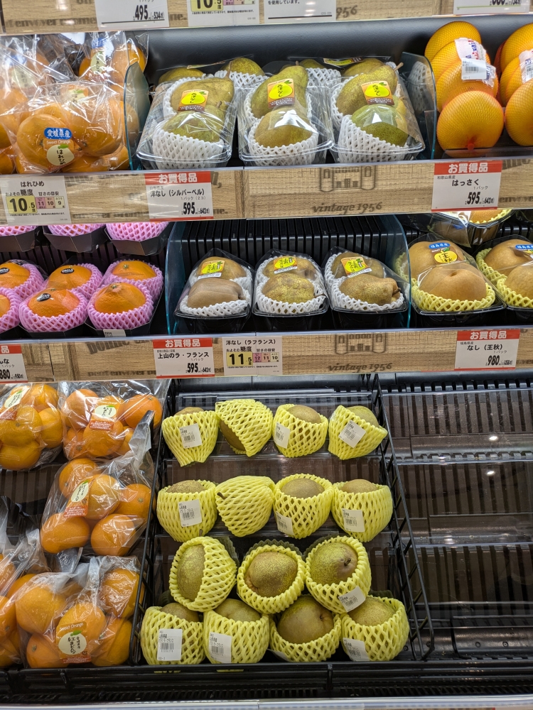今年はじめて,かみさんが新潟に縁のある知り合いの方から頂いいたものだったので,値段を知らずに食べたのだが,すごく甘くて美味しい洋梨という認識だった。が,テレビで紹介しているのを見てえ?そんなに高いの,と驚いた。昨日再び頂いてきた2個目を食べた。2回目になるとすこし感動が薄れるものだったのだが,この感動を他にも知らせたくなり,ちょうど母の誕生日が近いので,ネットで注文して実家に送り届けることにした(まだ発送の連絡がない)。また,仕事帰りに実際の店頭(新宿のデパ地下)での値段を調べてみた。