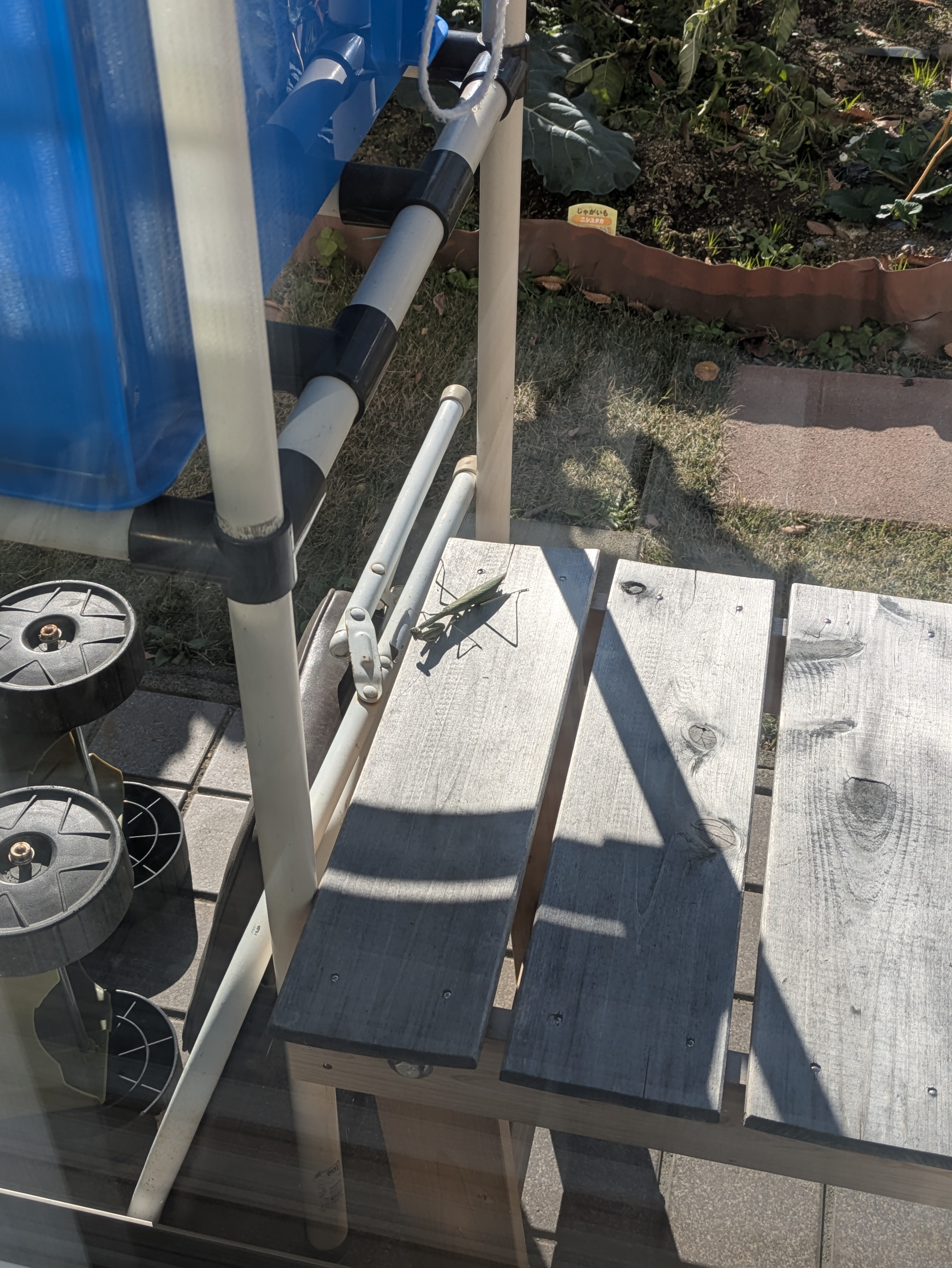 ここ数日冬晴れが続いたので夜は天体写真を2日続けて撮影した。庭に置いたヒノキの縁台であのカマキリが日向ぼっこしていた。これ以上寒くなればどこかにいなくなってしまうだろう。最後の挨拶に来たみたいで,なんだか悲しい気分にさせられた。