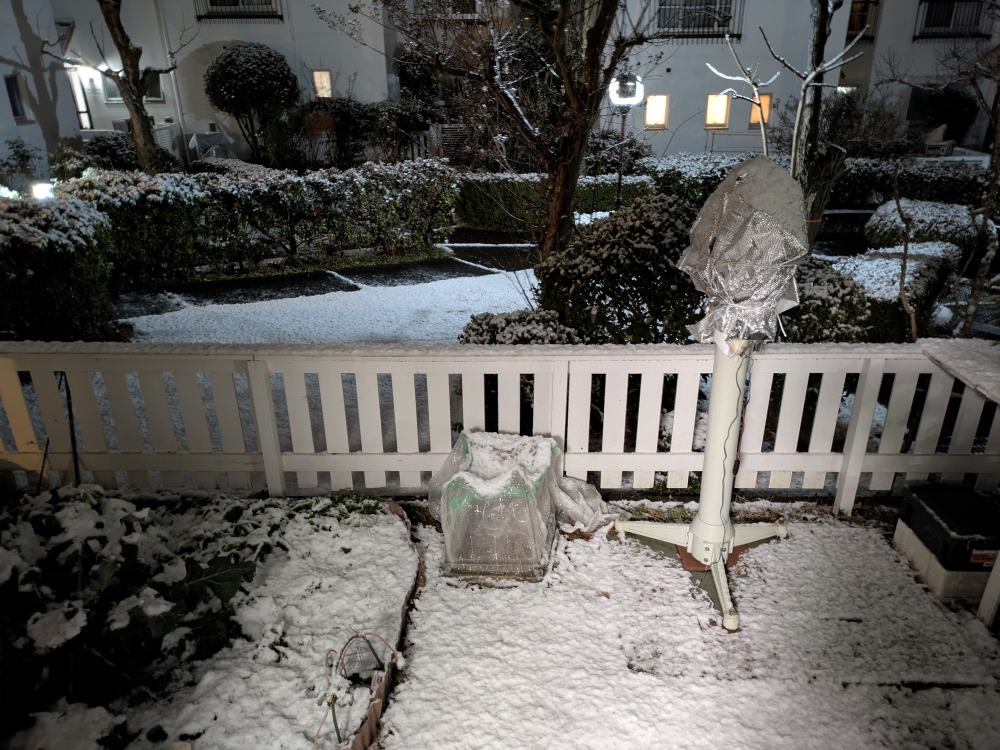 2日の夜には雪が降った。短い時間だったが結構積もった。