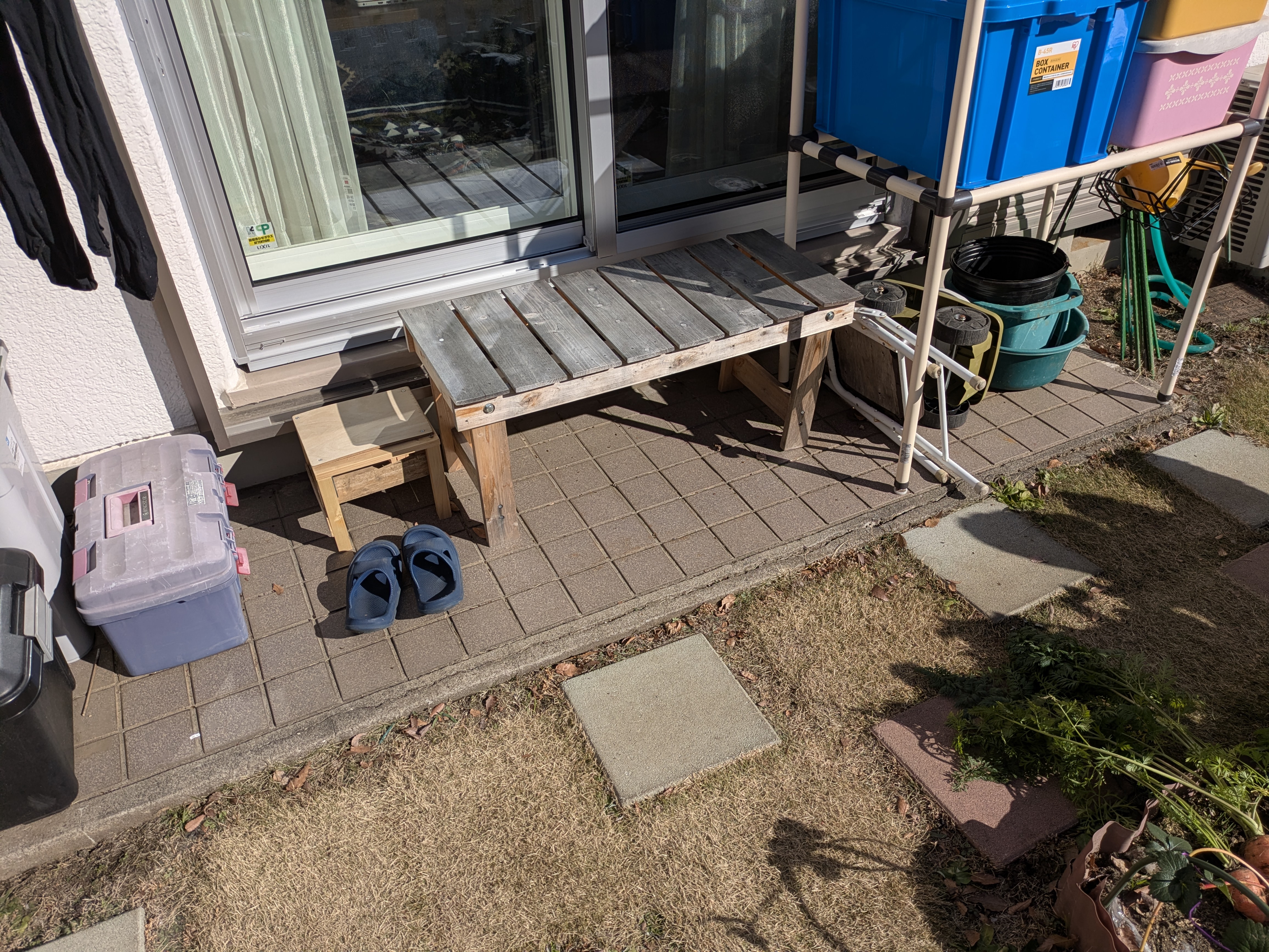 晴れていれば11時から午後2時くらいまでは家の中にいるより,庭の縁台のあたりで日向ぼっこしている方が暖かい。