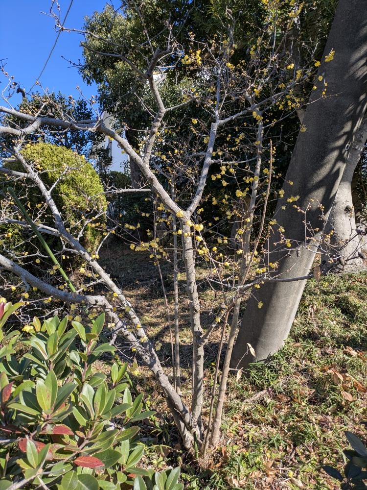 でも,近所の蝋梅がもう咲いている。菜園のジャガイモとニンジンを収穫してみた。