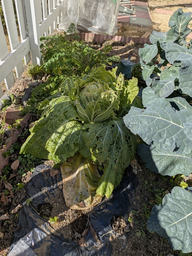 ほったらかしの白菜もなんとか結球している,収穫しても良いのかも。ブロッコリーは,正月に1個収穫しておせちの彩りに添えた。