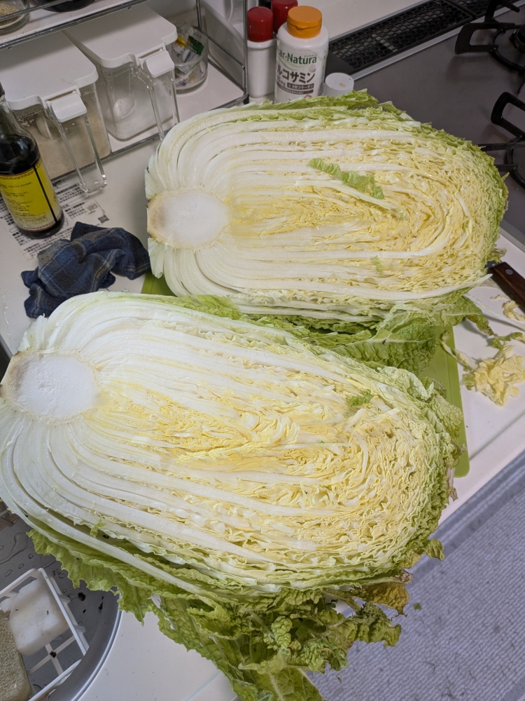 このときブログで野菜つくりは難しいとアップした。しかし,12月,1月とほったらかしにして,向こう側のブロッコリーの実が10cmくらいになったので正月のおせち用に収穫して,およそ4ヶ月で冒頭のようになった。夏のトマトやキュウリは2ヶ月もすれば次々に収穫できるが,冬の畑は時間がかかるものだということを経験したのだと思う。半分は実家に持っていった。浅漬けやタンメンの具で食べようと思う。半玉なら買えば200円もしないが4ヶ月もかかったと思うと感慨深い。農家の方の苦労が(プロは気にしてないだろうが)分かった気がした。