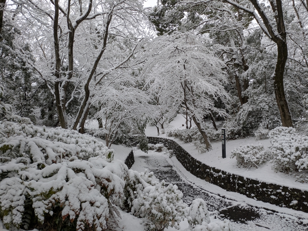 2月7日夜から翌日曜日の昼までに家の前では,約15cmの積雪となった。朝の段階(6時すぎ)では8cmぐらいだった。今年1月2日にも積もったが1,2cmくらい。去年の3月にも降ったが同じくらいで,これは交通が麻痺したり大変だろう思った。しかし,雪が乾いていてよくあるシャーベット状には残らず,午後にはアスファルトに積もったところは融けて,乾きはじめ,翌朝の月曜は冷え込みがすごかった(下のスクショは,室内と外の軒下に設置しているセンサー温度計の画面で,-6.2℃は最低記録更新だろう)が,歩いていても氷で滑ることはなく,積もっているところも粉雪みたいだった。