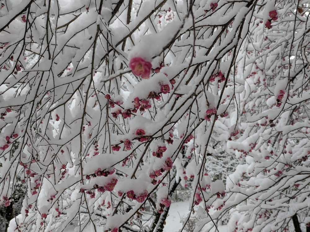なんだか冷え込みといい,雪の量といい温暖化とは真逆のような天候で,選挙もふくめて変なこと(異様な得票データ)が立て続けに起きたような気がした。日曜日にスーパー(生協)まで雪中行軍のように出かけた時に撮った瓜生緑地と紅梅のようす。綺麗だった。