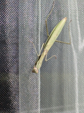一昨日のことだが庭に面した窓の網戸に,カマキリが止まっていた。昼頃気がついて,前足を折りたたんで,鎌...